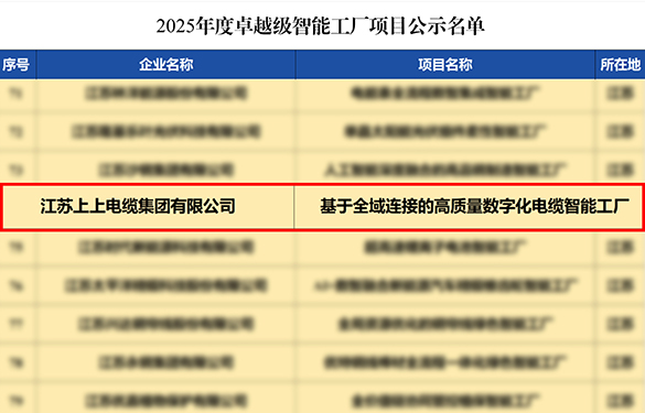 2025年,上上電纜憑借在技術(shù)創(chuàng)新、智能制造及產(chǎn)業(yè)升級(jí)方面的突出成就,成功獲評(píng)“全國工業(yè)和信息化系統(tǒng)先進(jìn)集體”,這是繼企業(yè)先后獲評(píng)“綠色工廠”“綠色供應(yīng)鏈管理企業(yè)”后,在工業(yè)和信息化領(lǐng)域獲得的又一國家級(jí)榮譽(yù)。